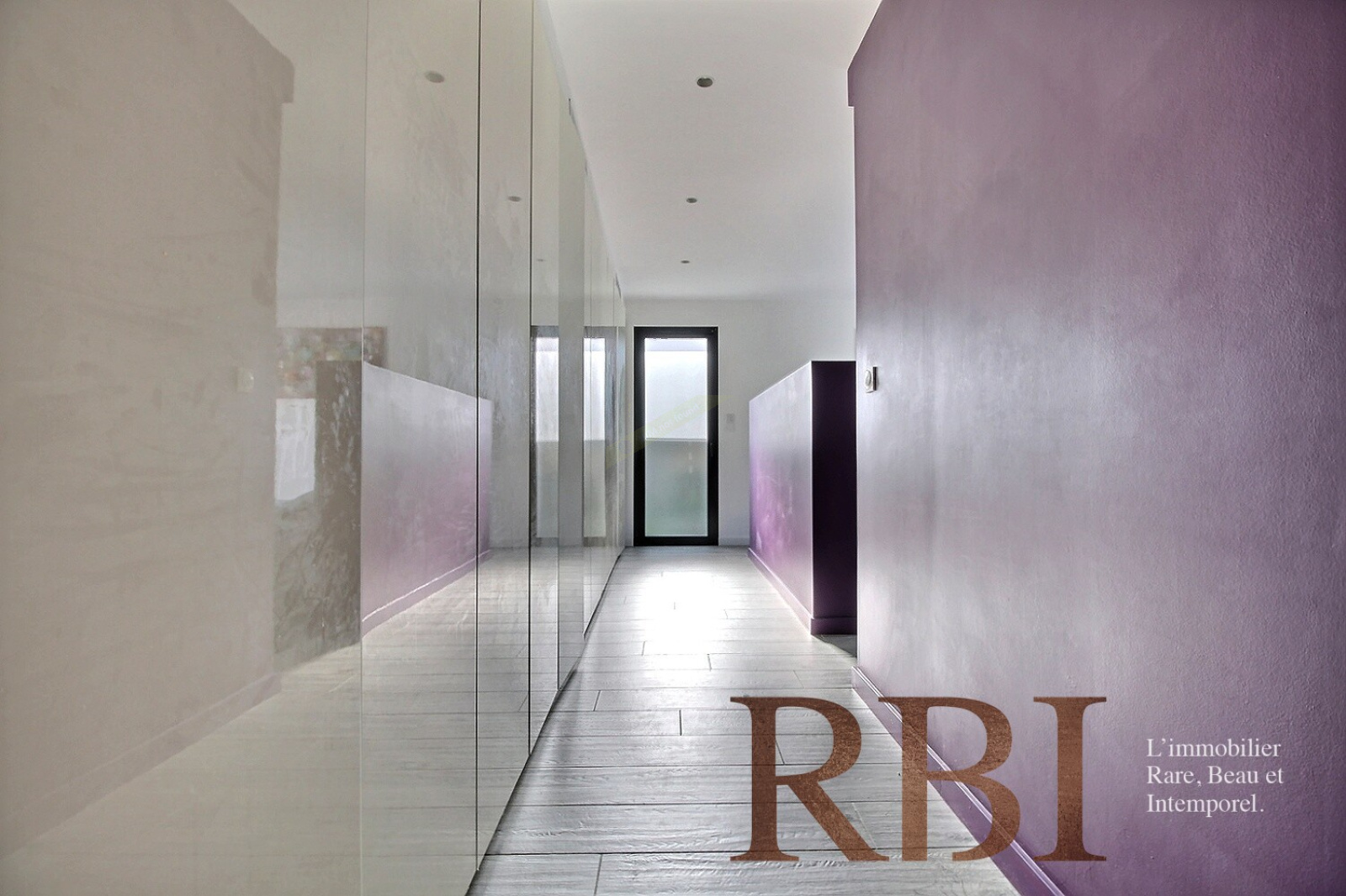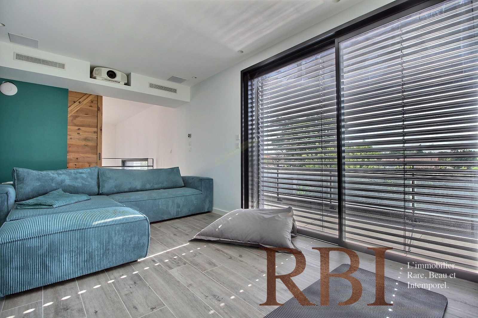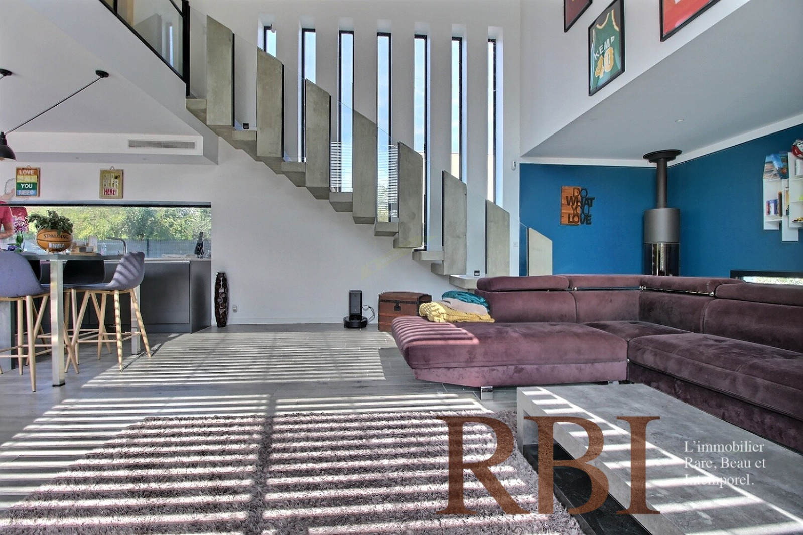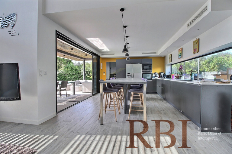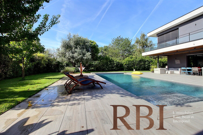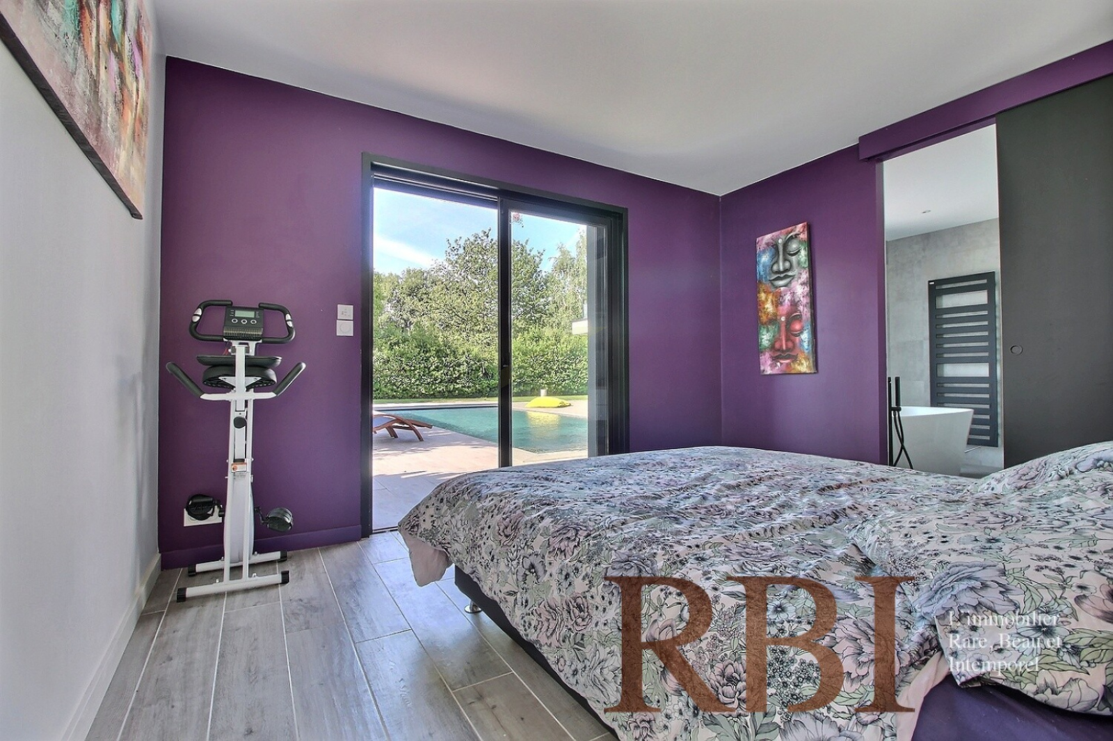 La maison s'articule autour de l'espace piscine. Au rez de jardin on trouve une entrée, un grand séjour déplafonné, une cuisine entièrement équipée et une buanderie/cellier. Côté nuit, sur ce même niveau, une première chambre avec son coin d'eau et une grande suite parentale avec dressing et salle de bains. Un bel escalier mène à l'étage vers une troisième chambre avec sa salle d'eau et une pièce home cinéma équipée. De construction récente elle est très bien équipée avec des nouvelles technologies : domotique sur tablette, une climatisation réversible, diffusion de son, fibre, ...