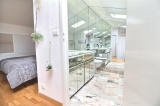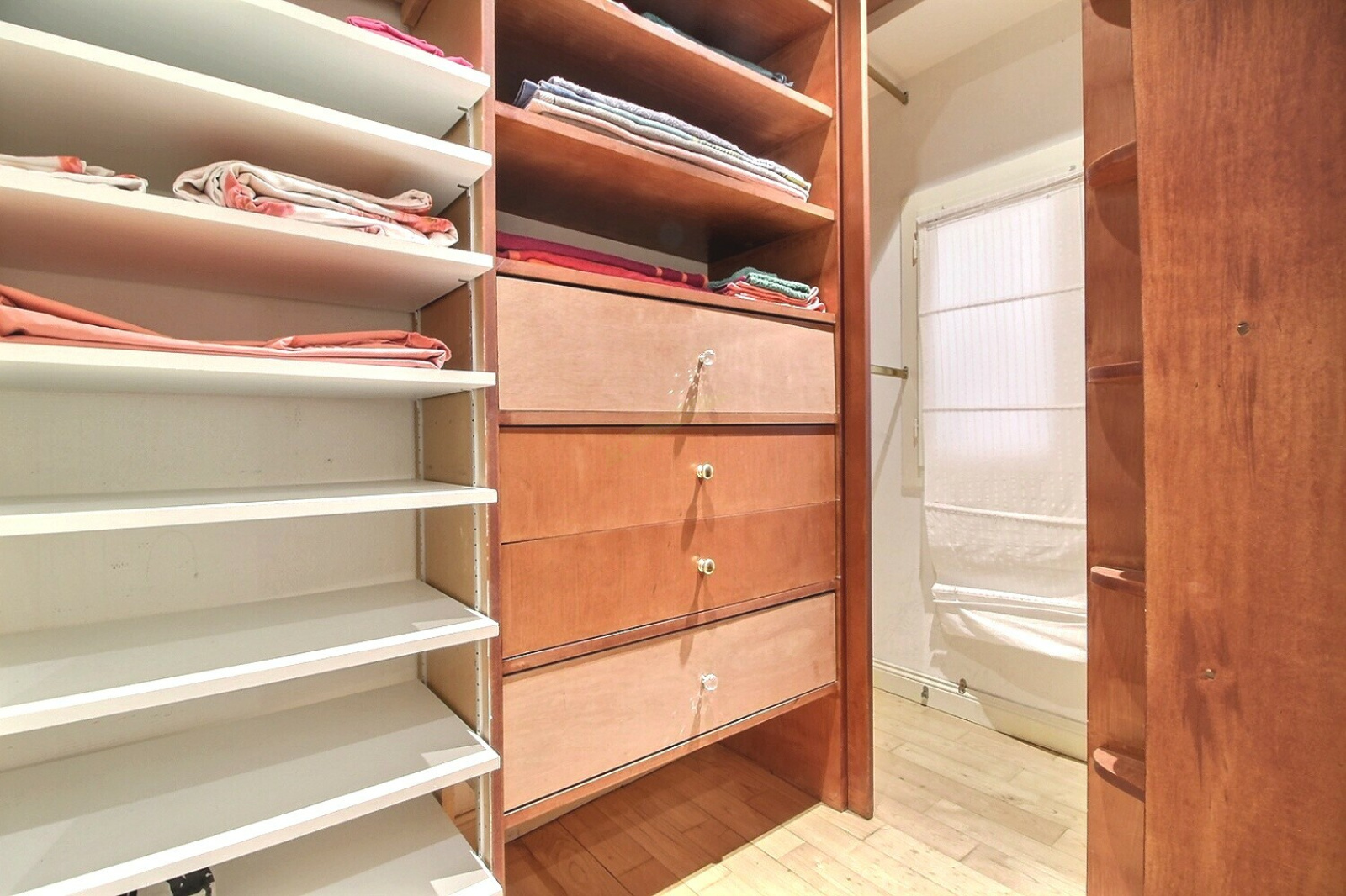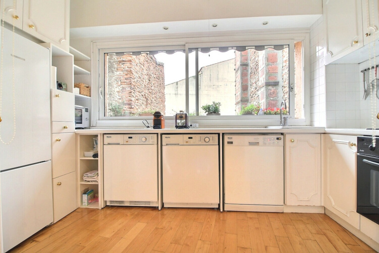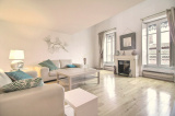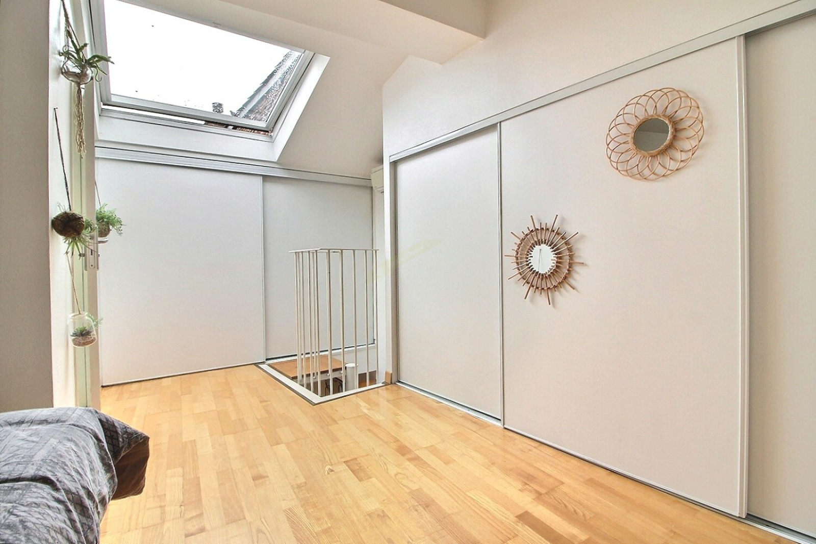 L'appartement offre :une belle entrée donnant sur un grand espace bureau/bibliothèque, une cuisine équipée ouverte sur le grand séjour, une chambre, une salle d'eau, un wc, un dressing. Un escalier dessert une chambre en suite avec de nombreux rangements.