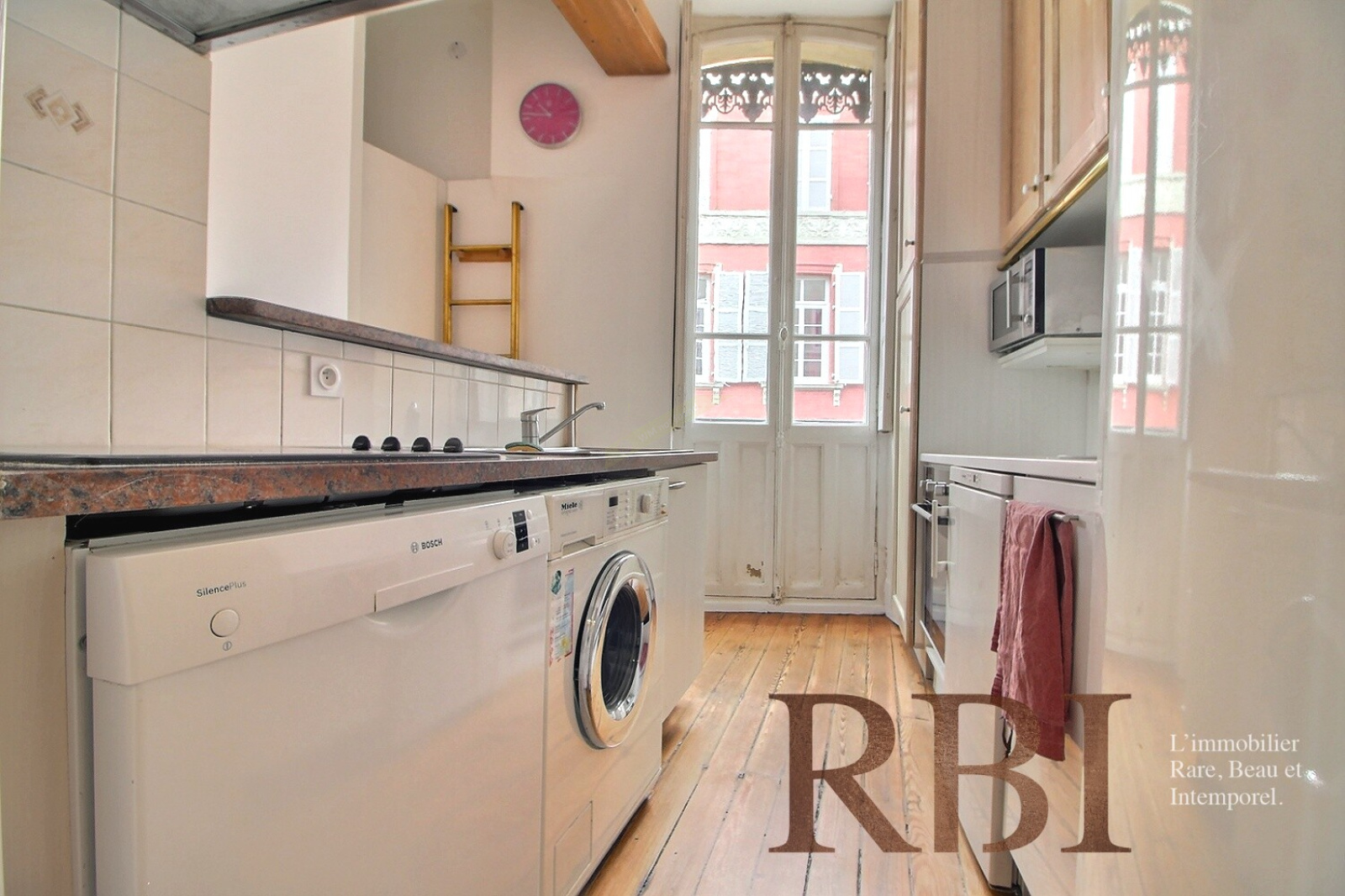 L'appartement propose une belle entrée, un large dégagement, une cuisine semi-ouverte sur séjour, trois chambres, une salle de bains et un studio avec chambre, coin cuisine et salle d'eau. L'immeuble est situé en angle et l'appartement bénéficie d'une bonne luminosité. Charme de l'ancien, dans le centre historique.
