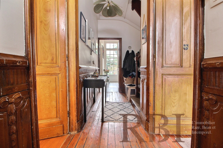 Elle propose, au rez-de-chaussée: un hall d'entrée, un bureau, une grande pièce de vie traversante avec cheminée et une cuisine équipée qui donne sur le jardin à l'arrière. Un joli escalier authentique mène à l'étage où un dégagement distribue 3 belles chambres et une salle de bain. L'escalier continue au niveau grenier qui a été aménagé en partie donnant deux petites pièces utiles et beaucoup de stockage. En annexe un balcon à l'étage des chambres et une cave utile et accessible au sous-sol. Chaudière à condensation neuve.