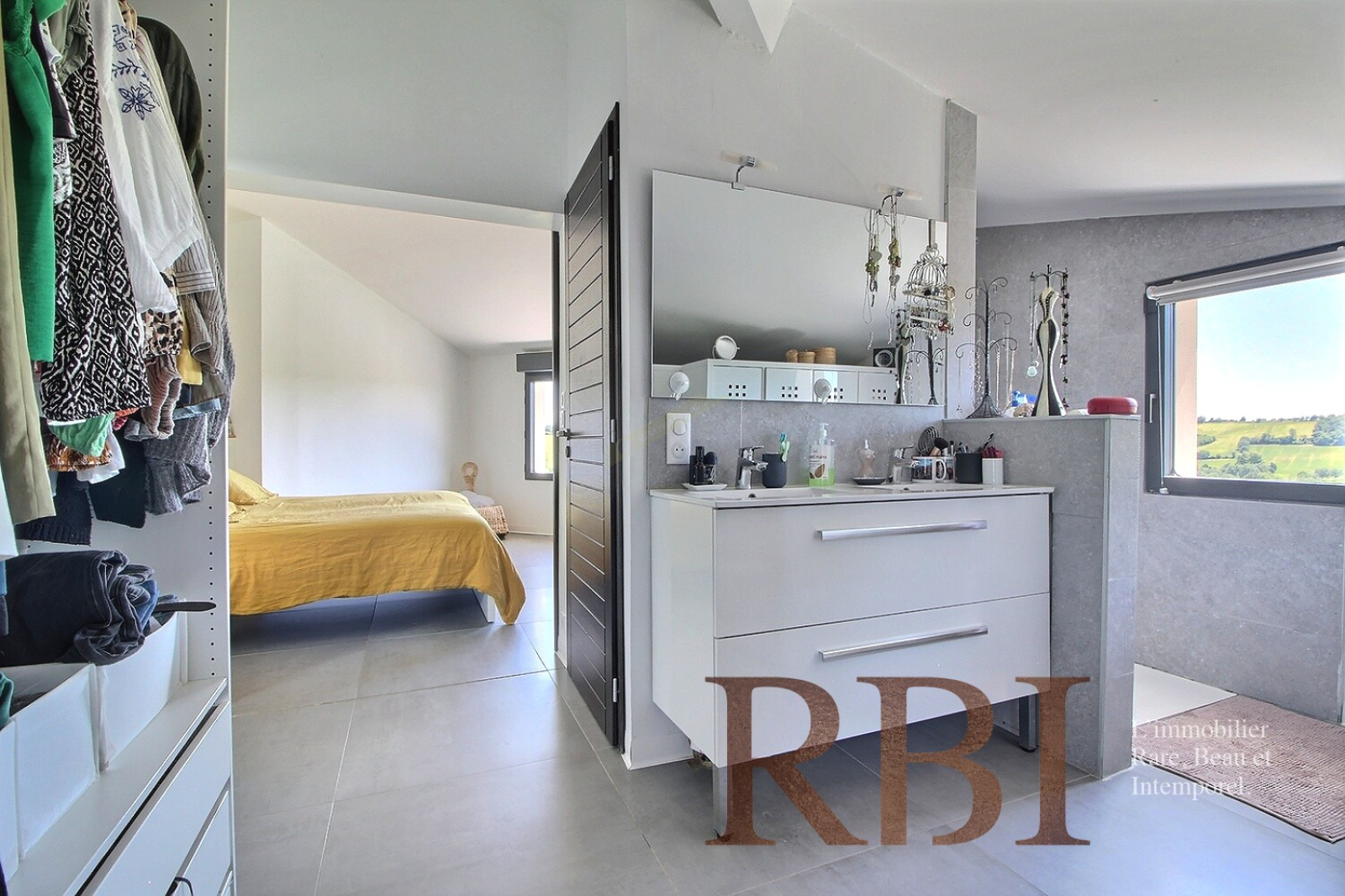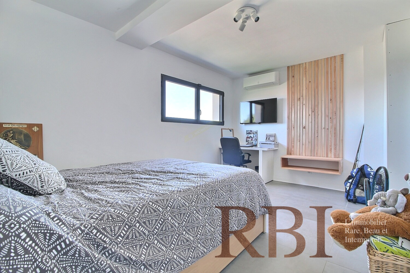 Le rez-de-jardin propose également deux grandes chambres avec dressings et salles d’eau, parfaitement adaptées à une vie de plain-pied. À l’étage, on retrouve une suite avec dressing et salle d’eau privative, une chambre d’amis, ainsi qu’un espace bureau et une pièce polyvalente.