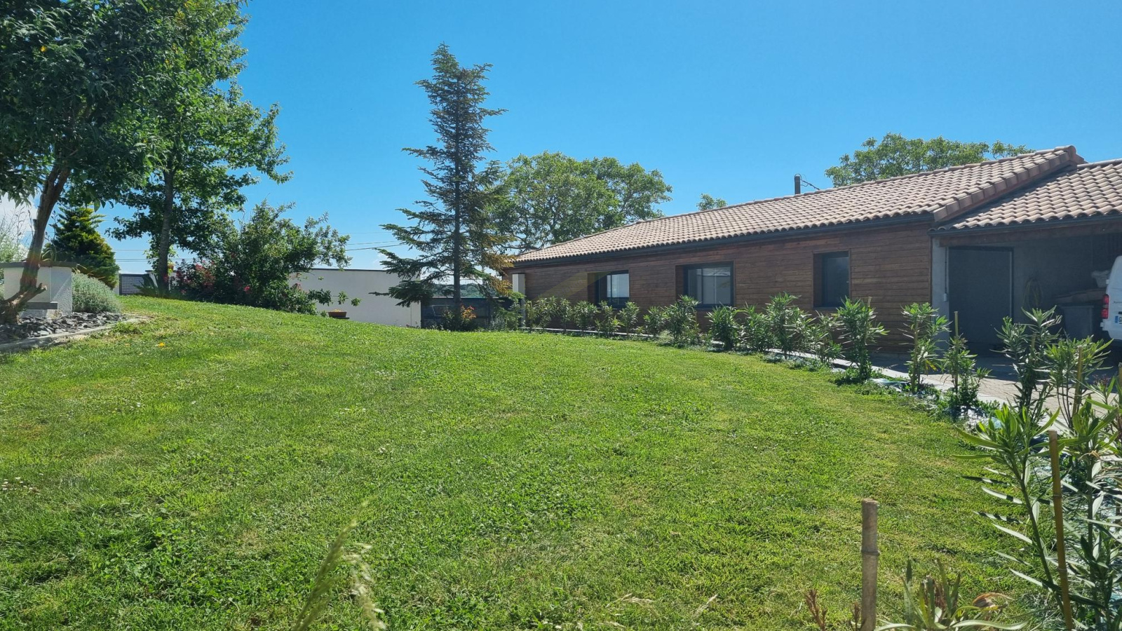 Les extérieurs sont tout aussi soignés. Une vaste terrasse de 120m², en prolongement direct du séjour, accueille une pergola bioclimatique. Elle borde une piscine au sel chauffée, équipée d’un volet roulant immergé. Un pool house complet avec cuisine extérieure, point d’eau et toilettes vient parfaire l’espace détente. Le jardin, entièrement clos et paysagé, dispose d’un éclairage intégré, de plusieurs points d’eau, d’un potager avec arrosage automatique, de cheminements en dur, d’un carport pour deux véhicules et d’un abri de jardin avec enclos.